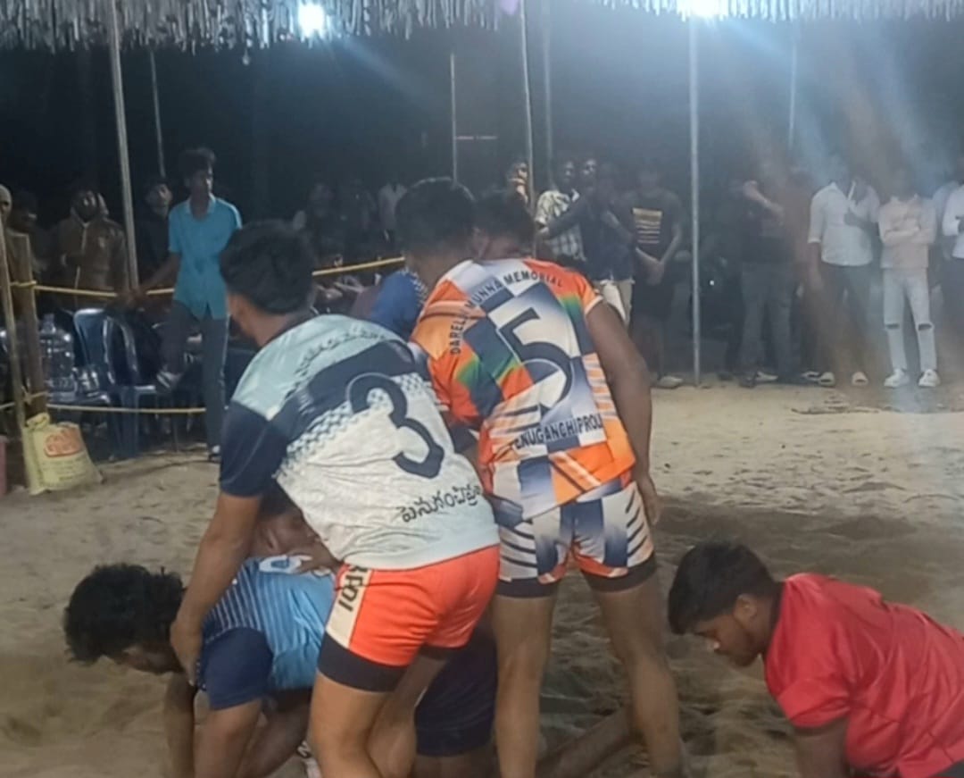 యలమంచిలి: జనవరి,9(తెలుగు న్యూస్ పవర్) స్థానిక అడవి పాలెం గ్రామంలో, సంక్రాంతి సంబరాలు సందర్భంగా, చెడుగుడు పోటీలు జరుగుతున్నాయి. నిమ్మల రామానాయుడు చెడుగుడు పోటీలు, మండల రైతు అధ్యక్షులు చెరుకూరి అంజిబాబు ఆధ్వర్యంలో నిర్వహిస్తున్నరు. నేటితో ఈ పోటీలు ముగియనున్నాయి. వివిధ జిల్లాల నుంచి వచ్చిన జట్లు హోరాహోరిగా, ఫ్లడ్ లైట్ల వెలుగులో తలపడుతున్నాయి. సుఖీభవ నర్సింగ్ హోమ్, డాక్టర్ చెరుకూరి సురేష్ బాబు, మొదటి బహుమతికి 50 వేలు, ముత్యాల అనంతలక్ష్మి శివ, రెండవ బహుమతికి 40 వేలు,వెంకటేశ్వర ఏజెన్సీ, వైభవ్ రెస్టారెంట్ వారు,మూడో బహుమతికి, 30 వేలు, నాలుగో బహుమతి, గుత్తికొండ కిషోర్, 25 వేలు, వారాహి డెవలపర్స్, బోనం పరమేశ్వరరావు, చేగొండి శ్రీనివాస్,5వ బహుమతి 20 వేలు, 6వ బహుమతి వర్ధనపు లక్ష్మయ్య (కువైట్ మామ) 15 వేలు, తిరుమల డైయరీ డిస్ట్రిబ్యూటర్, దేవరపు దుర్గా శంకర్, పాలకొల్లు,7వ బహుమతి, 10వేల రూపాయలు అందజేస్తున్నారు. బొలిశెట్టి రాధాకృష్ణ అండ్ సన్స్, వేగేస్న రంగరాజు, అన్న కనమర్లపూడి సుబ్బారావు, ముప్పర్తి సత్తిబాబు నాగార్జున, కర్రి,ప్రసాద్, వెంకటేశ్వరరావు, ఈమని రమేష్, పిల్ల గోపి, పొట్టు పోతూ శ్రీనివాస్ సౌజన్యం అందించారు. ఈ సందర్భంగా వారు అందరికీ కమిటీ తరఫున కృతజ్ఞతలు తెలియజేసారు. విద్యార్థులకు శనివారం రాత్రి బహుమతి ప్రధానోత్సవం చేస్తారు.