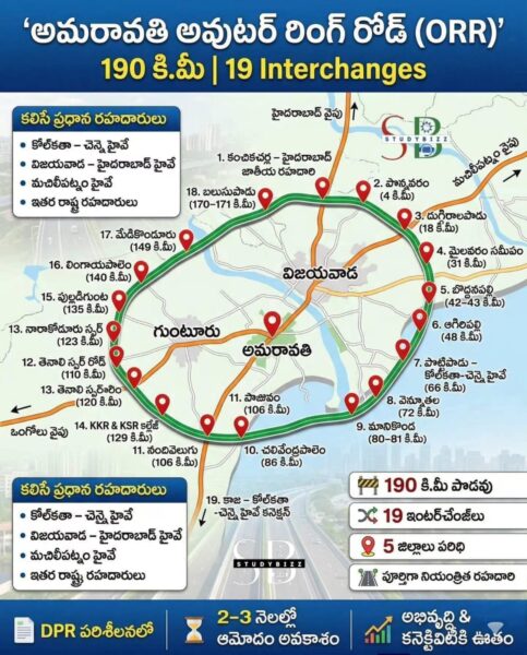 పలు రాష్ట్ర, జాతీయ రహదారులు అనుసంధానం చేస్తారు. మరో 2–3 నెలల్లో డి పి ఆర్ కు ఆమోదం వచ్చే అవకాశం ఉందని అంచనా వేస్తున్నారు.