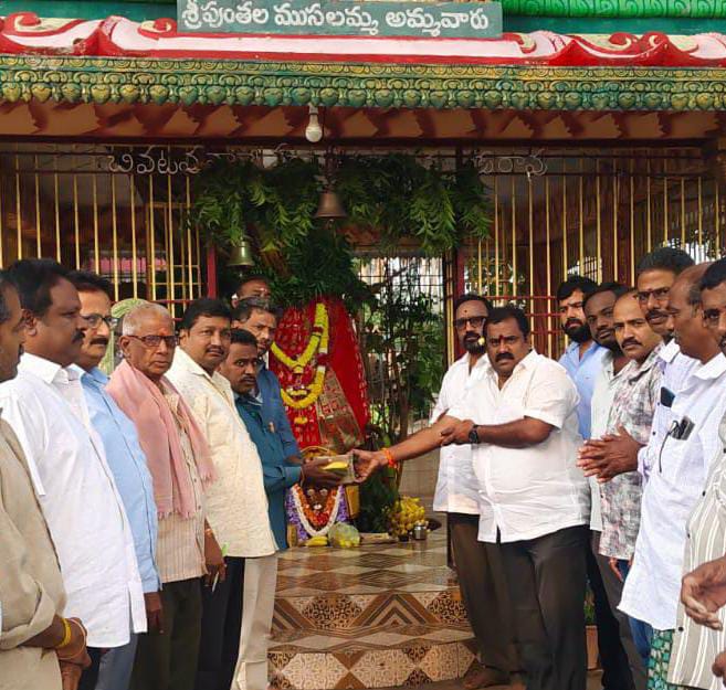 యలమంచిలి: జనవరి, 4(తెలుగు న్యూస్ పవర్) స్థానిక కాపులపాలెం, కుళాయి చెరువు వద్ద వేంచేసి ఉన్న శ్రీ పుంతల ముసలమ్మ అమ్మవారి జాతర మహోత్సవానికి ఆదివారం పందిరి రాడు వేశారు. ఈ సందర్భంగా, తాళ్లూరి శ్రీనివాస్ (వైజాగ్ బుజ్జి) శిరీష దంపతులు అమ్మవారికి 4.59 లక్షల రూపాయల భూరి విరాళం సమర్పించుకున్నారు. ఈ కార్యక్రమంలో మాజీ ఎంపీటీసీ చివటపు నాగేశ్వరరావు, కాసా సత్య, వీరబాబు,బొప్పన రాంబాబు, శనగల శ్రీనివాస్, కొడవటి శివరామకృష్ణ, ఆకుల యేసు, కాసా ఆంజనేయులు తదితర కమిటీ సభ్యులు పాల్గొన్నారు.