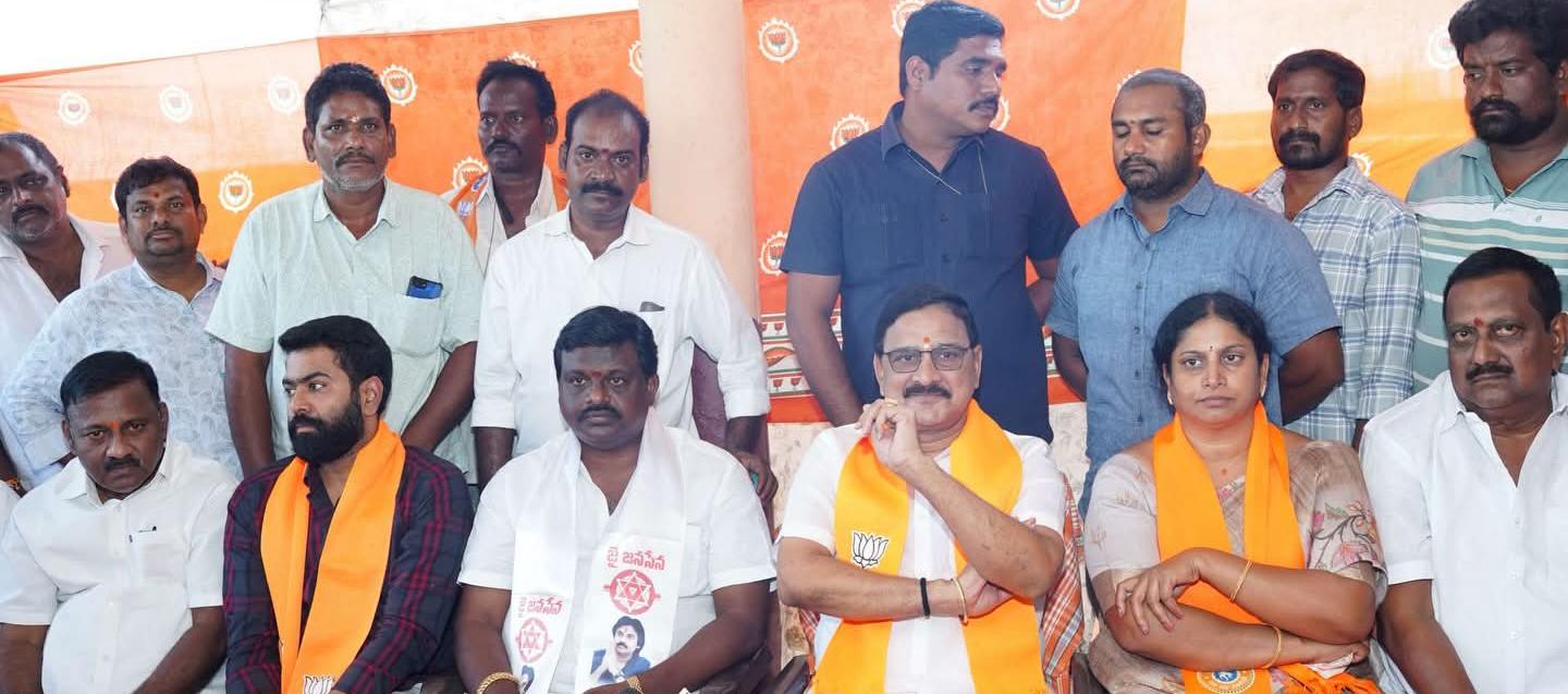 ఆకివీడులో కూటమి నాయకులతో కలిసి విలేకరుల సమావేశం నిర్వహిస్తున్న కేంద్ర మంత్రి వర్మ