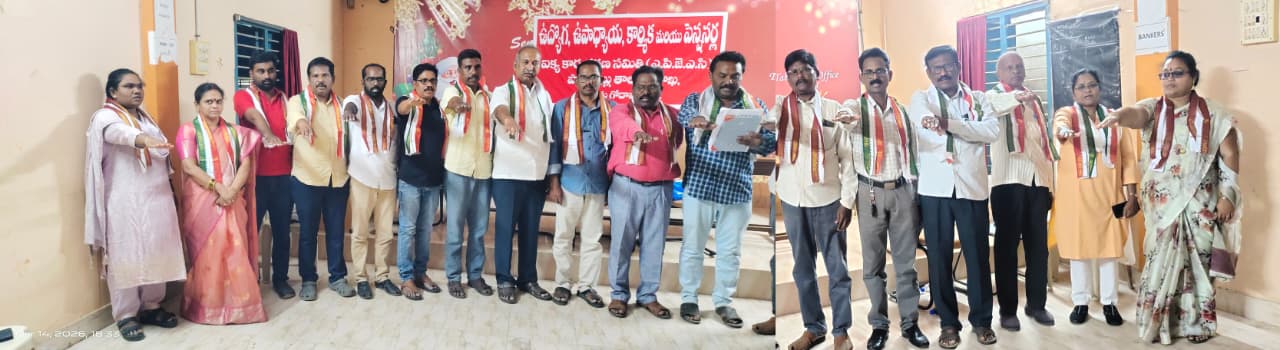 జేఏసీ శాఖకు సంబంధించిన ఉద్యోగ. ఉపాధ్యాయ. కార్మిక మరియు పెన్షనర్ల సంఘాల ఐక్య కార్యాచరణ సమితి సమావేశం అధ్యక్షులు గుడాల హరిబాబు అధ్యక్షతన జరిగింది. ఈ సమావేశంలో వివిధ కేడర్ల. ఉద్యోగ సంఘాల యొక్క సమస్యలపై చర్చించారు. జేఏసీ అధ్యక్షులు గు డాల హరిబాబు మాట్లాడుతూ . ఉద్యోగుల హక్కుల కోసం. రావాల్సిన పెండింగ్ బకాయిల కోసం. పిఆర్సి కమిటీ నియమించడం కోసం. ఐ ఆర్ కోసం. సిపిఎస్ ఉద్యోగస్తులను ఓపిఎస్ గా మార్చడం కోసం. కాంట్రాక్టు ఉద్యోగుల క్రమబద్ధీకరణ కోసం. సరెండర్ లీవ్ బకాయిలు విడుదల చేయడం కోసం వారి యొక్క న్యాయమైన డిమాండ్ల సాధనకు ప్రభుత్వం వెంటనే చొరవ చూపి పరిష్కరించాలని లేనిపక్షంలో ఉద్యమ బాట పడతామని సందర్భంగా నాయకులు పేర్కొన్నారు. జాయింట్ యాక్షన్ కమిటీ చైర్మన్ గా గుడాల హరిబాబు. ఎన్ జి జి ఓ అసోసియేషన్, . జనరల్ సెక్రటరీగా కె. రాజశేఖర్ యు టి ఎఫ్, . కోశాధికారి గుబ్బల ప్రసాద్ ఎన్ జి జి ఓ అసోసియేషన్, ఉపాధ్యక్షులుగా బి రాజకుమార్ ఎస్ టి యు, పి ఎన్ వి ప్రసాద్ పెన్షనర్స్ అసోసియేషన్,. జాయింట్ సెక్రెటరీలుగా.. వై అజయ్ కుమార్ సి ఐ టి యు, ఎన్ వెంకట్రావు ఏపీటీఎఫ్, ఏ. క్రాంతి గ్రామ వార్డు సచివాలయం, కే. చంద్రరావు యుటిఎఫ్, ఈసీ మెంబర్స్ గా.బిహెచ్ రాంబాబు ఎస్టియు, ఎంవి రాజశేఖర్ యుటిఎఫ్, బి ప్రసాద్ ఏ పి టి ఎఫ్, జి లక్ష్మీనారాయణ యుటిఎఫ్, ఎస్ గాయత్రి పంచాయతీ సెక్రెటరీ అసోసియేషన్, ఈ ప్రసాద్ ఎస్ టి యు, ఆర్ కమలనాథ్ యుటిఎఫ్, బి సునీత స్టాఫ్ నర్స్ అసోసియేషన్, కే స్వప్న కాంట్రాక్ట్ స్టాఫ్ నర్స్ అసోసియేషన్, విజయ్ బాబు లెక్చరర్స్ అసోసియేషన్, ఎస్ మోహన్ ఆఫీస్ అబార్డినేట్ అసోసియేషన్, సతీష్ బాబు ఆర్టీసీ ఎన్ఎంయూఅసోసియేషన్, కే.నాగరాజు యూటీఎఫ్ లను ఎన్నుకోవడం జరిగినది. ఈ కార్యక్రమానికి ముఖ్యఅతిథిలు గా విచ్చేసిన యుటిఎఫ్ జిల్లా ఉపాధ్యక్షులు క్రాంతి కుమార్ మాట్లాడుతూ ఉద్యోగుల హక్కుల సాధనకు తమ సంఘం సహాయ సహకారాలు అందించడం జరుగుతుందని తెలిపారు. ఎస్ టి యు రాష్ట్ర అధ్యక్షులు గుత్తుల శ్రీనివాస్ మాట్లాడుతూ ఉద్యోగులకు రావలసిన బకాయిలను వెంటనే చెల్లించుటకు ప్రభుత్వం చొరవ చూపాలని. ఉద్యోగ ఉపాధ్యాయ కార్మిక మరియు పెన్షనర్ల హక్కుల కోసం జాయింట్ యాక్షన్ కమిటీ నిరంతరం పోరాటం చేయాలని కోరారు. ఈ కార్యక్రమంలో వివిధ సంఘాల నాయకులు పాల్గొన్నారు