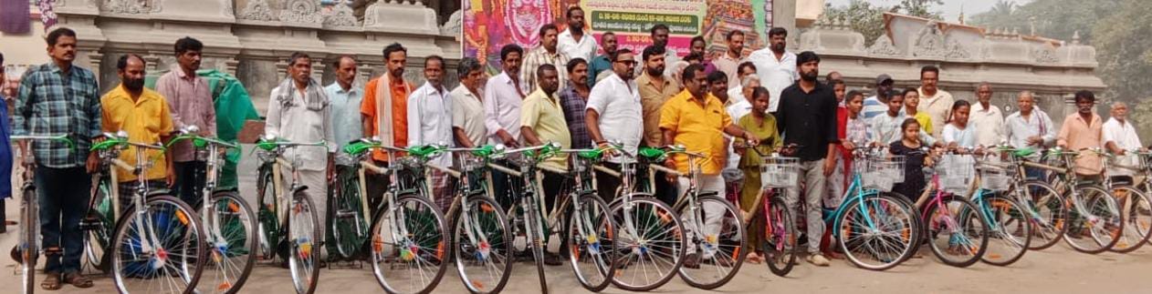 యలమంచిలి: జనవరి,18(తెలుగు న్యూస్ పవర్) మండల కేంద్రమైన యలమంచిలి లో తాళ్లూరి శ్రీనివాస్, వైజాగ్ బుజ్జి ఆధ్వర్యంలో ఎన్టీఆర్ వర్ధంతి సందర్భంగా ఘనంగా నివాళులర్పించారు. ఈ సందర్భంగా 27 మందికి కొత్త సైకిళ్ళు ఉచితంగా పంపిణీ చేశారు. విద్యార్ధినిలకు, రోజువారి వ్యవసాయ కార్మికులకు ఈ సైకిళ్లు అందచేశారు. ఈ కార్యక్రమంలో బొప్పన రాంబాబు, చిలుకూరి ఆంజనేయులు, తాళ్లూరు చందు, ఆకుల యేసు, బొప్పన సురేష్, కాసా సత్య, పలువురు గ్రామ పెద్దలు, యువకులు ఈ కార్యక్రమంలో పాల్గొన్నారు.