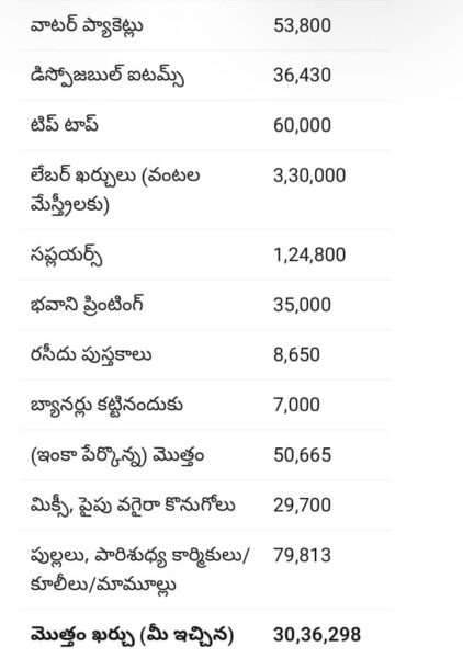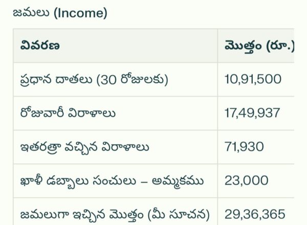 శ్రీ క్షీరా రామలింగేశ్వర స్వామి ఆలయ కార్తీకమాస అన్నదాన కమిటీ, జమా ఖర్చుల వివరాలు.