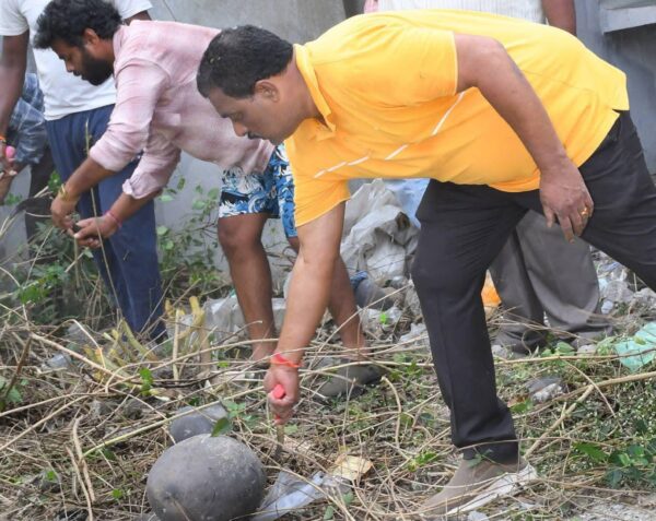 స్మశాన వాటిక శుభ్రం చేస్తున్న గాంధీభగవాన్ రాజు