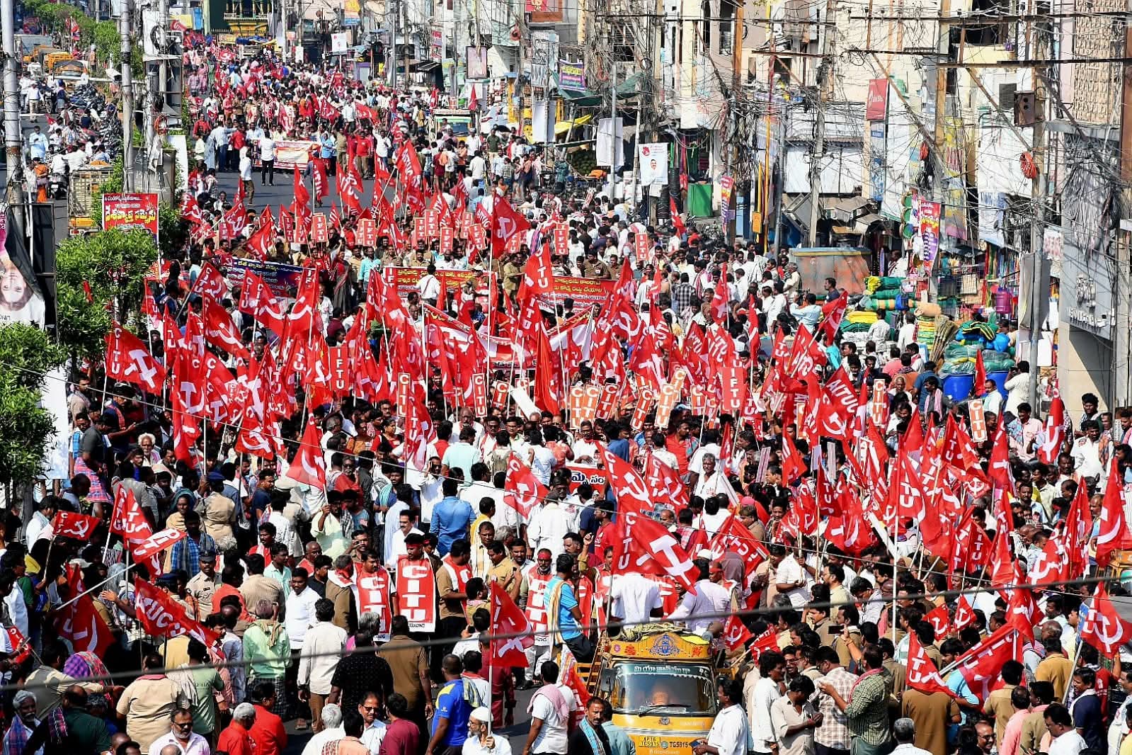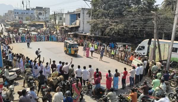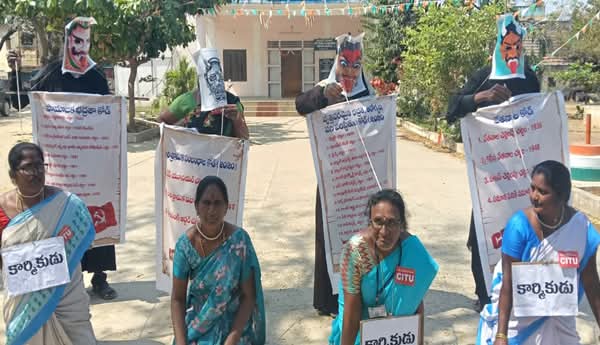 భీమవరం/పాలకొల్లు/యలమంచిలి: ఫిబ్రవరి, 12(తెలుగు న్యూస్ పవర్) అఖిలభారత కార్మిక సంఘాల ఆధ్వర్యంలో గురువారం జరిగిన జాతీయ సార్వత్రిక సమ్మె ఘన విజయం సాధించిందని కార్మిక సంఘాల నాయకులు ప్రకటించారు. బ్రిటిష్ కాలం నుంచి పోరాడి సాధించుకున్న 29 కార్మిక చట్టాలను రద్దు చేయడంపై, దేశంలోని ప్రముఖమైన 10 కార్మిక సంఘాలు గురువారం జాతీయ సార్వత్రిక సమ్మె జరిపాయి. కార్మికుల సంక్షేమాన్ని, ఆరోగ్యాన్ని కాలరాస్తూ, మోడీ ప్రభుత్వం తీసుకు వచ్చిన నాలుగు లేబర్ కోడ్ లు వెంటనే ఉపసంహరించుకోవాలని కార్మిక లోకం ఆగ్రహం వ్యక్తం చేస్తూ సమ్మెకు పిలుపునిచ్చింది. పశ్చిమగోదావరి జిల్లా నలుమూలల కార్మిక సంఘాలు ఈ సమ్మెలో పూర్తిగా పాల్గొన్నాయి. వీరికి ఉద్యోగ ఉపాధ్యాయ సంఘాలు సంఘీభావం ప్రకటించాయి. భీమవరం, పాలకొల్లు, యలమంచిలి మండలాల్లో ర్యాలీలు నిర్వహించారు. కార్మికులను యంత్రాల కంటే హీనంగా కార్పొరేట్ సంస్థలకు తాకట్టు పెట్టడాన్ని,సంఘాలు తీవ్రంగా గర్హించాయి. పరిమితి లేని పనిగంటలు కార్మికులను శారీరకంగా, మానసికంగా దేవుడు ఇబ్బందులకు గురి చేస్తాయని వాపోయారు. మహిళలు కూడా రాత్రిపూట పనిచేయాలని చట్టం చేయటం, ప్రభుత్వ ధమానీతికి పరాకాష్టగా చెప్పవచ్చునన్నారు. కార్మిక సంఘాల ఏర్పాటును కూడా మొగ్గలోనే తుంచి వేయాలని చేసిన నిబంధనలు కార్మికుల ఐక్యతను దెబ్బతీయటానికి వెల్లడించారు. కార్మికుల,కార్మిక సంఘాల ప్రయోజనాలకు విఘాతం కలిగించే, దుర్మార్గపు నూతన చట్టాలు రద్దు చేసే వరకు కార్మిక సంఘాలు పోరాటం చేయాలని పలువురు నాయకులు పిలుపునిచ్చారు.జిల్లాలో పలుచోట్ల ప్రజా సంఘాలు ఈ సమ్మెలో విశేషంగా పాల్గొన్నాయి. యుటిఎఫ్ జిల్లా ప్రధాన కార్యదర్శి, పోలిశెట్టి ప్రాంత కుమార్, అధ్యక్షులు విజయరామరాజు, భీమవరం పాలకొల్లు ఎలమంచిలి మండలంలో జరిగిన భారీ ర్యాలీలో పాల్గొన్నారు. సిఐటియు నాయకులు దేవ సుధాకర్ యలమంచిలి మండలంలో సమ్మె విజయవంతం కావడానికి కృషి చేశారు. విజయ్ కుమార్ ఉద్యమకారులకు మజ్జిగ అందజేశారు. ఎలమంచిలి మండల కమిటీ అల్పాహారం అందజేసింది. మండల కేంద్రం వద్ద ఉరితాళ్లు వేసుకొని ఉద్యకార్లు నిరసన తెలిపారు.
