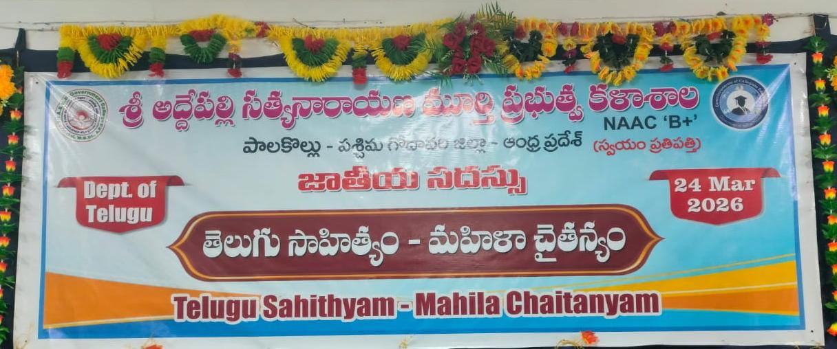 పాలకొల్లు: మార్చి,23(తెలుగు న్యూస్ పవర్. కాం) స్థానిక శ్రీ అద్దేపల్లి సత్యనారాయణ మూర్తి ప్రభుత్వ కళాశాలలో నేడు, మంగళవారం జాతీయస్థాయి సదస్సు నిర్వహిస్తున్నట్టు ప్రిన్సిపల్ టి రాజరాజేశ్వరి సోమవారం తెలిపారు. తెలుగు సాహిత్యం-మహిళా చైతన్యం అనే అంశం మీద ఈ సదస్సు జరుగుతున్నట్టు వివరించారు. ప్రాచ్య పరిశోధన సంస్థ, చెన్నై,తెలుగు శాఖ అధిపతి, ఆచార్య విస్తాలి శంకర్రావు, ప్రారంభ సమావేశ కీలక ఉపన్యాసం చేస్తారు. కేంద్రీయ విశ్వవిద్యాలయం, హైదరాబాద్, తెలుగు శాఖ, పూర్వ అధ్యక్షులు, ఆచార్య దార్ల వెంకటేశ్వరరావు, సాంకేతిక సమావేశంలో కీలకోపన్యాసం చేస్తారు. ఈ సదస్సుకు ప్రిన్సిపల్ టీ. రాజరాజేశ్వరి అధ్యక్షత వహిస్తారు. తెలుగు శాఖాధిపతి, కన్వీనర్, డాక్టర్ బూసి వెంకటస్వామి సదస్సు నివేదిక సమర్పిస్తారు. ఆత్మీయ అతిథులు,టి కృష్ణ, వైస్ ప్రిన్సిపల్, ఆర్గనైజింగ్ సెక్రటరీ, డాక్టర్ ఎం రామకృష్ణ, జంతు శాస్త్ర విభాగాధిపతి, కో కన్వీనర్. డాక్టర్ విజయలక్ష్మి సదస్సుకు స్వాగతం పలుకుతారు. జీడి శ్రీనివాసరావు వందన సమర్పణ చేస్తారు. కళాశాల తెలుగు విభాగం వారు ఈ సదస్సు నిర్వహిస్తున్నారు.