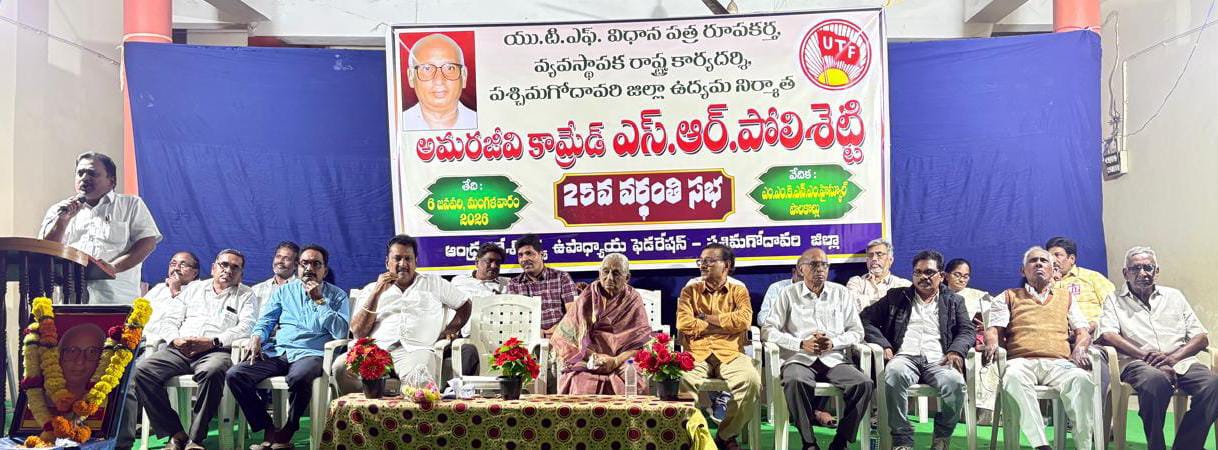 పాలకొల్లు: డిసెంబర్,6(తెలుగు న్యూస్ పవర్) ఉపాధ్యాయ ఉద్యమం కోసం, కుటుంబాన్ని త్యాగం చేసిన త్యాగదనుడు, అమరజీవి ఎస్ ఆర్ పోలిశెట్టి అని, ఎమ్మెల్సీ బోర్ర గోపి మూర్తి, నివాళులు అర్పించారు. ఉపాధ్యాయ ఉద్యమ నేత ఎస్ ఆర్ పోలిశెట్టి 25వ ఉమ్మడి జిల్లా వ్యాప్త,వర్ధంతి సభ, మంగళవారం రాత్రి,, స్థానిక ఎం ఎం కే ఎన్ ఎం మున్సిపల్ ఉన్నత పాఠశాల, దాసరి నారాయణరావు వేదిక వద్ద జరిగింది. ఈ సభకు బోర్ర గోపి మూర్తి ముఖ్య అతిథిగా హాజరయ్యారు. యుటిఎఫ్ జిల్లా అధ్యక్షులు విజయరామరాజు అధ్యక్షత వహించారు. యుటిఎఫ్ వ్యవస్థాపక కార్యదర్శిగా ఆయన రూపొందించిన, విధానం పత్రం, సమ సమాజ స్థాపనకు పునాదని గోపి మూర్తి పేర్కొన్నారు. ఆర్థికంగా అత్యంత గడ్డు పరిస్థితులు ఎదుర్కొన్నా, ఉద్యమాన్ని నిర్మించి, నడిపించడం లో వారి కృషి ఎనలేనిదని కొనియాడారు. కార్యకర్తలను గుర్తించి, వారిని నాయకులుగా తీర్చిదిద్దడంలో, ఎస్సార్ పోలిశెట్టి దిట్టని కొనియాడారు. అలాంటి వారిలో, దివంగత యుటిఎఫ్ నేత, మాజీ ఎమ్మెల్సీ సాబ్జీ ఒకరిని వెల్లడించారు. ఈ కార్యక్రమంలో పలువురు, ఉపాధ్యాయ నేతలు ఎస్ఆర్ పోలిశెట్టి ఘనతను స్మరించుకున్నారు. ఎస్ ఆర్ పోలిశెట్టి ధర్మపత్ని విజయలక్ష్మి, కుమారులు పీవీ నరసింహారావు, వారి కుటుంబ సభ్యులు, వేదిక వద్ద నివాళులు అర్పించారు. ఈ సభకు లక్ష్మీనారాయణ స్వాగతం పలికారు. ఉమ్మడి పశ్చిమగోదావరి జిల్లా నుంచి పలువురు ఉపాధ్యాయ ఉద్యమ నాయకులు, ఉపాధ్యాయుని, ఉపాధ్యాయులు హాజరయ్యారు. ఈ కార్యక్రమంలో పోలిశెట్టి గోపాలకృష్ణ గోఖలే,