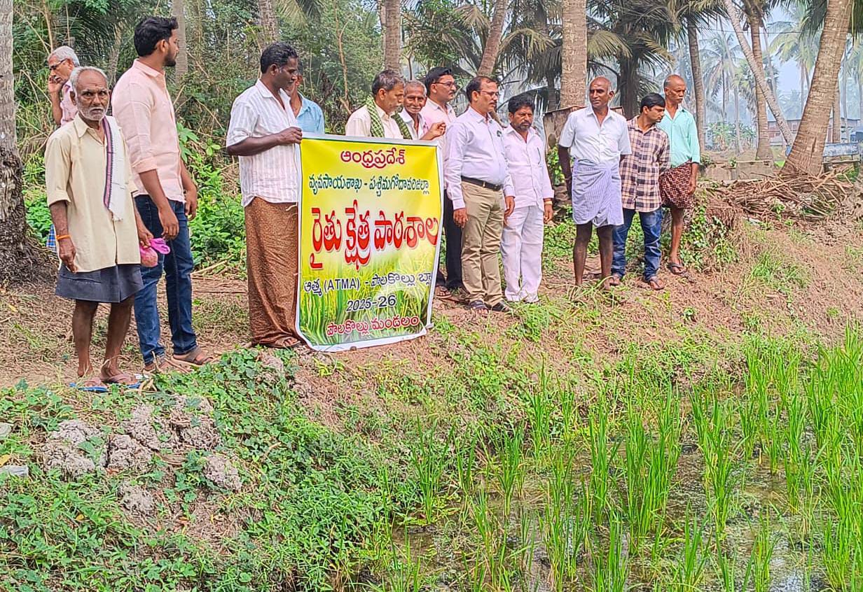 పాలకొల్లు: జనవరి,29(తెలుగు న్యూస్ పవర్) ప్రస్తుత దాల్వా వరిపై మొవ్వు పురుగు ఆశించినట్టు ఏడిఏ మురళీకృష్ణ రైతులకు వెల్లడించారు. రైతు బడి కార్యక్రమంలో భాగంగా లంకలకోడేరులో రైతు క్షేత్ర పాఠశాల నిర్వహించారు. ఈ సందర్భంగా జరిగిన క్షేత్ర పర్యటనలో వరిపై మొవ్వు కుళ్ళు తెగులు ఆశించినట్టు గుర్తించారు. ఈ తెగులు నివారణకు, ఐసోసైక్లోసరాన్ అనే పురుగుమందు, ఒక మిల్లిలీటర్, ఒక లీటర్ నీటికి కలిపి పిచికారి చేయాలని రైతులకు సూచించారు. జింక్ లోపం నివారణకు, రెండు గ్రాముల,జింక్ సల్ఫేట్, ఒక లీటర్ నీటిలో కలిపి, ఒక ఎకరానికి 150 లీటర్లు చొప్పున వారిపై చల్లాలని తెలియజేశారు. ఈ విధంగా ఐదు రోజుల తర్వాత మరోసారి పిచికారీ చేయాలన్నారు. ప్రస్తుత వాతావరణ పరిస్థితి చలిగా ఉండటం వల్ల ఈ లోపాలు కనిపిస్తున్నాయన్నారు. అతిగా పురుగు మందులు వాడటం వల్ల పేరుకు మేలు చేసే మిత్ర పురుగులు చనిపోతాయన్నారు. రైతులు వ్యవసాయ అధికారుల సూచన మేరకు మాత్రమే పురుగు మందు చల్లాలని విజ్ఞప్తి చేశారు. ప్రస్తుత దశలో వరిచేలకు కాంప్లెక్స్ ఎరువులు వేయడం వల్ల ప్రయోజనం లేదని రైతులు గమనించాలన్నారు. వరి పంట నమోదు గురించి ఈ కార్యక్రమంలో వివరించారు. ఏపీ ఎఫ్ ఆర్ నమోదు గురించి రైతులకు వివరించారు. ఈ కార్యక్రమంలో పలువురు రైతులు, పాల్గొని తమ సందేహాలను నివృత్తి చేసుకున్నారు.