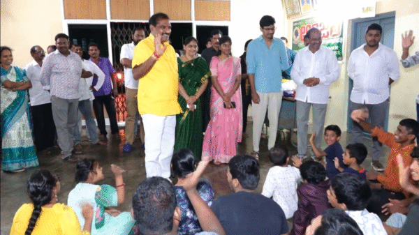 దీపావళి పండుగ సందర్భంగా రాష్ట్ర జలవనరుల శాఖామాత్యులు నిమ్మల రామానాయుడు పాలకొల్లు, పెనుమదం రోడ్డులోగల అంజలి మానసిక దివ్యాంగుల పాఠశాలను సోమవారం తమ కుటుంబ సభ్యులతో కలిసి సందర్శించారు. పాఠశాల విద్యార్థులకు దీపావళి శుభాకాంక్షలు తెలుపుతూ వారితో ముచ్చటించారు. నిమ్మల రామానాయుడు, సూర్యకుమారి దంపతులు వారి కుమార్తె శ్రీజపవన్ దంపతులు పాల్గొని విద్యార్థులకు బహుమతులు అందించారు. ఈ సందర్భంగా ఆ చిచ్చర పిడుగుల ముఖాల్లో వెల్లివిరిసిన ఆనందాల హరివిల్లు చూసి చిచ్చుబుడ్లు చిన్నబుచ్చుకొన్నాయి, మతాబులు ముఖం ముడుచుకున్నాయి. కుటుంబ సభ్యులంతా ప్రేమా, వాత్సల్యా లతో మిఠాయిలు నోటికి అందించితినిపించారు. గోమాతకు ఆహారం అందించారు. ఏటా జరిగే ఈ కార్యక్రమం ఈ ఏడాది అంజలి మానసిక దివ్యాంగుల పాఠశాల లో జరుపుకొన్నారు. ఇప్పుడు తన కుమార్తె తో పాటు అల్లుడు కూడా ఈ కార్యక్రమంలో పాల్గొనడంపట్ల సంతోషం వ్యకంచేశారు. పెద్ద మనసు చేసుకొని దివ్యాంగుల పాఠశాలకు దీపావళి పండుగలా వచ్చిన నిమ్మలను పలువురు అభినందించారు. ఈ కార్యక్రమంలో మాజీ కౌన్సిలర్ పెశ్చెట్టి బాబు తదితరులు పాఠశాల సిబ్బంది పాల్గొన్నారు