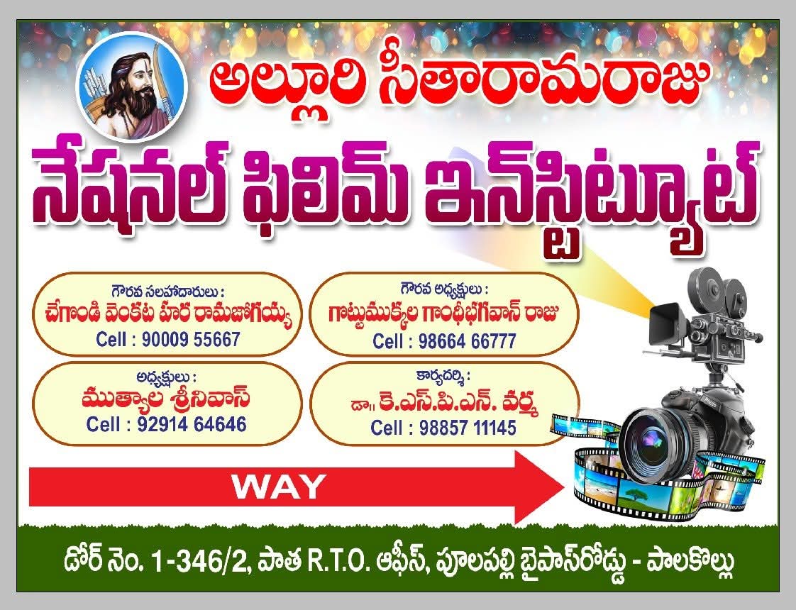 భవిష్యత్తులో ఎందరో కళాకారులను తయారు చేయాలన్న తపనతో పూలపల్లిలో అల్లూరి సీతారామరాజు ఫిలిం ఇన్స్టిట్యూట్ ప్రారంభిస్తున్నట్టు మంత్రి నిమ్మల రామానాయుడు పేర్కొన్నారు. ఫిలిం ఇన్స్టిట్యూట్ బుధవారం మంత్రి లాంఛనంగా ప్రారంభించారు .ఈ సందర్భంగా మంత్రి మాట్లాడుతూ పాలకొల్లు కళలకు ,కళాకారులకు పుట్టిల్లు అన్నారు .అలనాటి అల్లు రామలింగం,దాసరి నారాయణరావు , రవిరాజ పినీశెట్టి, కోడి రామకృష్ణ ,రేలంగి నరసింహారావు నుంచి నేటి చేగొండి అనంత శ్రీరామ్ వరకు ఎందరో కవులు కళాకారులు ఈ పాలకొల్లు కీర్తి ప్రతిష్టలను సినిమా రంగంలో ఇనుమడింప చేశారన్నారు. ఈ చిత్ర సంస్థ ద్వారా ఎందరో ఔత్సాహికులైన్ కళాకారులకు అవకాశాలు వస్తాయని ఆశాభావం వ్యక్తం చేశారు .ఈ సందర్భంగా మంత్రి పూజాధికాలు నిర్వహించారు. కూటమి ప్రభుత్వం పర్యాటక రంగాన్ని ఎంతో ప్రోత్సహిస్తుందన్నారు. చలనచిత్రాలు చిత్రీకరణకు గోదావరి జిల్లాల పరిసర ప్రాంతాలు పకృతి రమణీయత ఆధ్యాత్మిక క్షేత్రాల సందర్శన ఎంతగానో దోహదపడతాయన్నారు.కార్యక్రమంలో సలహాదారు, మాజీ ఎంపీ, సినీ నిర్మాత చేగొండి వెంకటయ్య హరిరామయ్య మాట్లాడుతూ చిరకాల స్వప్నం నెరవేరి ఫిల్మ్ ఇనిస్ట్యూట్ ప్రారంభమైందన్నారు. రాజ్యసభ సభ్యులు పాక సత్యనారాయణ తన వంతు సహకారాన్ని ఈ శిక్షణా సంస్థకు అందిస్తామని హామీ ఇచ్చారు. ఫిలిం ఇన్స్టిట్యూట్ అధ్యక్షులు ముత్యాల శ్రీనివాస్ మాట్లాడుతూ ఈ ఇన్స్టిట్యూట్ ప్రారంభించడానికి సహకరించిన చేగోండి హరిరామజోగయ్య, గొట్టుముక్కల గాంధీ భగవాన్ రాజులకు కృతజ్ఞతలు తెలిపారు. ప్రస్తుతం శిక్షణ కోరుకునే వారి నుంచి దరఖాస్తులు స్వీకరిస్తామన్నారు. జనవరి నుంచి శిక్షణ తరగతులు ప్రారంభమవుతాయన్నారు .ఈ కార్యక్రమంలో గౌరవ అధ్యక్షులు గాంధీభగవాన్ రాజు ,కార్యదర్శి డాక్టర్ వర్మ , యాక్సెప్సియోసభ్యులు దర్శకులు రాజ వన్నెంరెడ్డి ,బోనం నరసయ్య, చవ్వాకుల సురేష్ కలిదిండి గణపతిరాజు ,వీరా పోతన ,ప్రదీప్ ఉదయ్ వి. వెంకటరమణ ,గుడాల హరిబాబు ప్రదీప్,బందెల భాస్కరరావు తదితర పలువురు కళాకారులు ఈ ప్రారంభోత్సవంలో పాల్గొన్నారు.