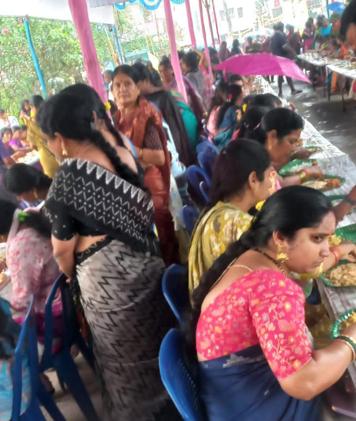 అన్న సమారాధనలో మహిళా భక్తుల సహఫంక్తి భోజనం.