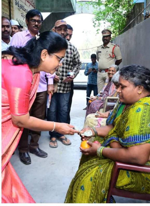 పింఛన్ల పంపిణీలో కలెక్టర్ నాగరాణి.
