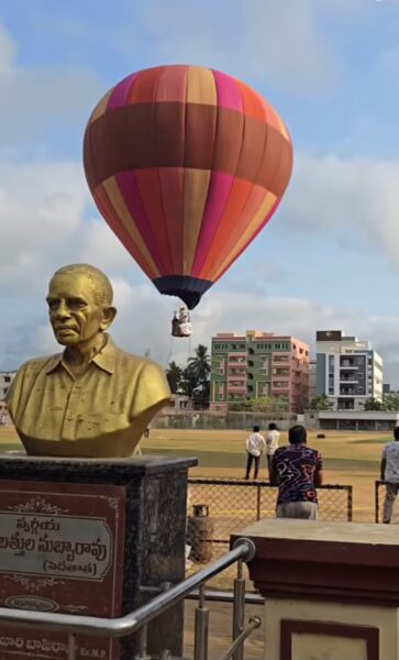 భీమవరం: ఏప్రిల్, 17(తెలుగు న్యూస్ పవర్. కామ్) ప్రపంచంలో అత్యంత ఖరీదైన పట్టణాల్లో ఒకటైన జిల్లా కేంద్రం భీమవరం లో హాట్ ఎయిర్ బెలూన్ (వేడిగాలి గుమ్మటం) ఎగ్జిబిషన్, డిఎన్ఆర్ కళాశాల ప్రాంగణంలో శుక్రవారం కలెక్టర్ ప్రారంభించారు. ఈ ప్రదర్శన తొలిసారి పట్టణానికి వచ్చింది. ఒక్కో బిర్యాని ఆరుగురు సభ్యుల సవారిశి అనగా ఉంటుంది. సుమారు 200 మీటర్ల ఎత్తుకు గాలిగుమ్మటం ఎగురుతుంది. వేసవి సెలవుల్లో బాలలకు ఇది చక్కటి అనుభూతి కలుగజేస్తుందని కలెక్టర్ చదలవాడ నాగరాణి తెలిపారు.