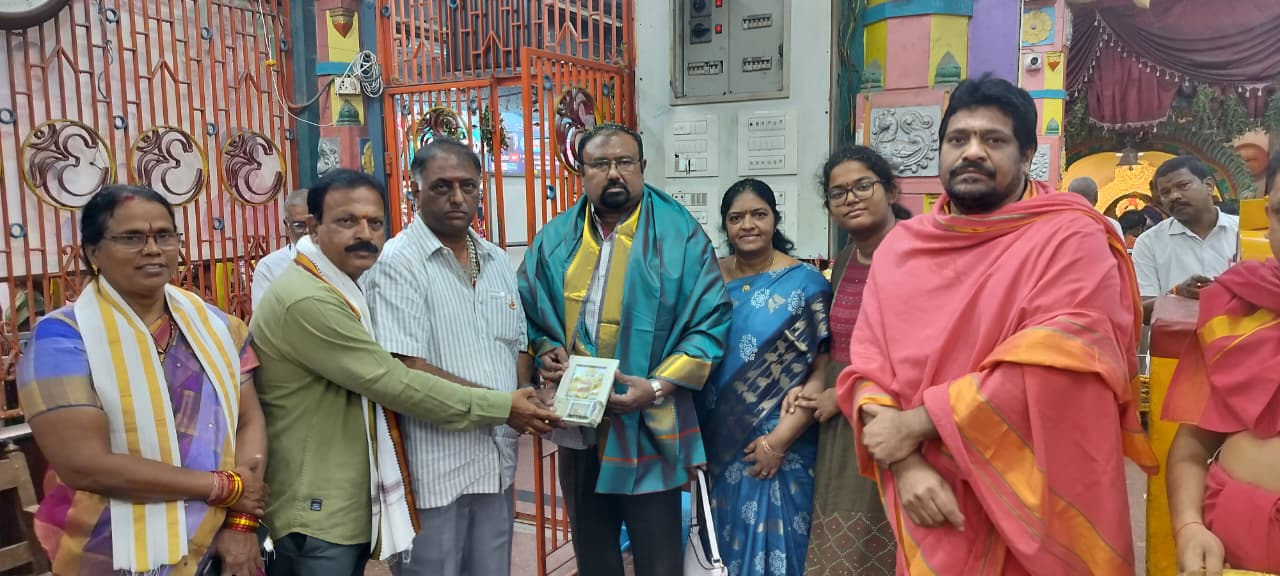అమ్మవారి నిత్యాన్నదాన పథకానికి నగదు విరాళం సమర్పిస్తున్న సుంకర కుటుంబ సభ్యులు.