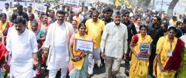 మహిళా బిల్లు అడ్డుకున్న విపక్షాలపై నిరసన ర్యాలీ నిర్వహిస్తున్న ముఖ్యమంత్రి చంద్రబాబు నాయుడు