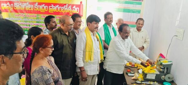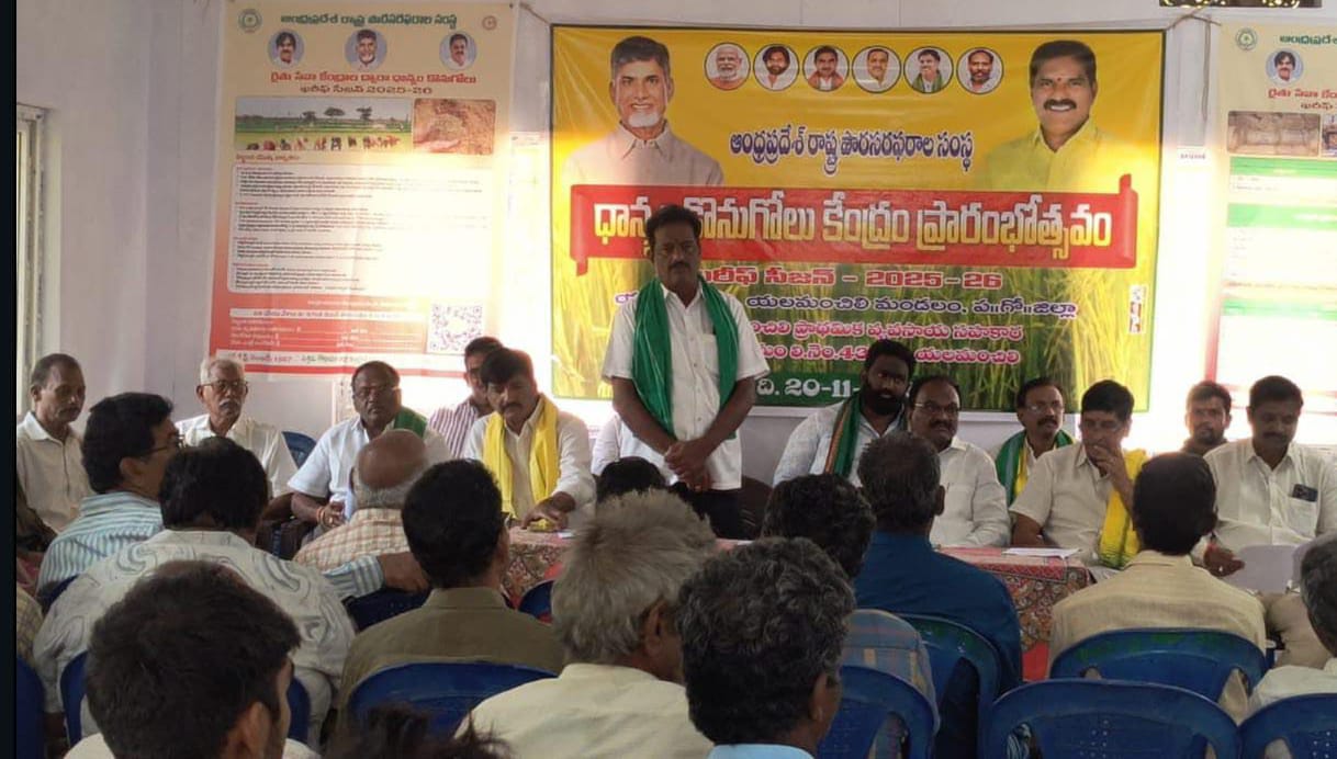 మండల కేంద్రమైన యలమంచిలిలో సార్వ ధాన్యం కొనుగోలు కేంద్ర ప్రారంభమైంది. రాష్ట్ర తెలుగు రైతు ఉపాధ్యక్షులు బోనం నాని గురువారం ఈ కొనుగోలు కేంద్రాన్ని ప్రారంభించారు. బిజెపి రాష్ట్ర మీడియా అధికార ప్రతినిధి ఉన్నమట్ల కపర్ది ధాన్యం తేమ కొలిచే యంత్రాన్ని ప్రారంభించారు. సొసైటీ అధ్యక్షులు బొప్పన హరికిశోర్ మాట్లాడుతూ కూటమి ప్రభుత్వం వచ్చిన తర్వాత రైతులకు కావలసిన అన్ని విషయాల్లో ప్రభుత్వం సహకారం అందిస్తున్నదన్నారు, రైతులు ఎంతో సంతోషంగా ఉన్నారన్నారు. వ్యవసాయ శాఖ అధికారులు ప్రసాద్, ,త్రిపుర సుందరిలు, ధాన్యం అమ్మకంలో రైతులు తీసుకోవలసిన జాగ్రత్తలు గురించి అవగాహన కలిగించారు. ఈ కార్యక్రమంలో మండల తెలుగుదేశం నాయకులు మామిడిశ్చేట్టి పెద్దిరాజు, శిరగాలపల్లి సొసైటీ చిలుకూరు మురళి ప్రసాద్, ఏఎంసీ మాజీ ఉపాధ్యక్షుడు చిట్టూరి ఆంజనేయులు, ఆరమిల్లి చిన్ని, చిలుకూరి శ్రీనివాస్ సొసైటీ కార్యదర్శి తమ్మి నీడి శాంతకుమారి, తమ్మినీడివెంకటరామయ్య వారి సిబ్బంది సందీప్, శివ, మండల రైతులు ఈ ప్రారంభోత్సవంలో పాల్గొన్నారు.