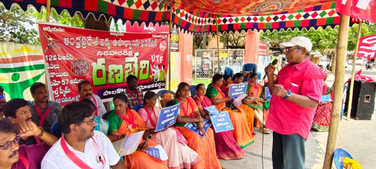 యుటిఎఫ్ రణభేరి కార్యక్రమంలో మాట్లాడుతున్న సిఐటియు నాయకులు దేవ సుధాకర్