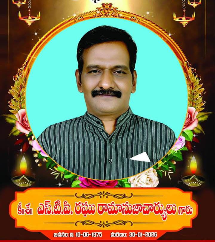 పాలకొల్లు: జనవరి,30(తెలుగు న్యూస్ పవర్) స్థానిక ఎడ్ల బజారు సెంటర్లో వేంచేసి పంచముఖ ఆంజనేయ స్వామి వారి ఆలయ ప్రధాన అర్చకులు రమణ గురుస్వామి, సోదరులు రఘు గురుస్వామి శుక్రవారం ఆకస్మికంగా మృతి చెందారు. వీరి మరణం పాలకొల్లును విషాదంలో నింపింది. గురుదేవులు, ఎస్టిపివి ఆచార్యుల కుమారులు వీరు. ఎందరికో ఆత్మీయ బంధువు. భక్త జనుల కోసం ఎంతగానో తరితిపించిన నిస్వార్థ దైవ భక్తులు. స్థానిక గజలక్ష్మి ప్రాంతంలో అప్పటికప్పుడు, ఏర్పాట్లు చేసి, అయ్యప్ప స్వామి వారి భజన కార్యక్రమం ఏర్పాటు చేసిన పట్టుదలగల భక్తుడు రఘుబాబు. అందరిని ఆప్యాయంగా పలకరించి,సహకరించే సహృదయుడు రఘుబాబు. ముక్కుసూటి మనిషి గా పేరు తెచ్చుకున్నారు. భక్తులకు వీరంటే ఆత్మీయ అభిమానం. వీరికి రాజకీయ నేపథ్యం ఉంది. బిజెపి పార్టీ కోసం తన విలువైన జీవితాన్ని అర్పించారు. నిరంతరం స్కూటర్పై తిరుగుతూ, జిల్లా వ్యాప్తంగా భారతీయ జనతా పార్టీ బలోపేతానికి కృషి చేశారు. బిజెపి మొదటి శ్రేణి నాయకులతో వీరికి సన్నీహిత సత్సంబంధాలు ఉండేవి. మహారాష్ట్ర మాజీ గవర్నర్ విద్యాసాగర్ రావు తో అర్ధరాత్రి అయినా ఫోన్లో మాట్లాడేటంత చనువు వీరికి ఉంది. ఆ తర్వాత, ఏవో కారణాలవల్ల పార్టీ వ్యవహారాలకు దూరంగా ఉంటున్నారు. మున్సిపల్ వార్డు ఎన్నికల్లో, పోటీ చేసి ప్రత్యర్థికి గట్టి పోటీ ఇచ్చారు. వీరి మృతి వార్త పట్టణ ప్రజలు నమ్మలేకపోయారు. స్థానిక సూర్య తేజస్ నగర్లోగల గృహం వద్ద పలువురు వారికి శ్రద్ధాంజలి ఘటించారు. ఈ సందర్భంగా వారి పవిత్ర ఆత్మకు శాంతి చేకూరాలని, వారి కుటుంబ సభ్యులకు, ఈ విషాద సమయంలో భగవంతుడు తోడుగా ఉండాలని, ప్రగాఢ సానుభూతి వ్యక్తం చేశారు. బిజెపి నాయకులు కొల్లికొండ ప్రసాద్, ఉన్నమట్ల కపర్తి, జక్కంపూడి కుమార్, సిరిగినీడి రామారావు, చింతపల్లి రమేష్ శెట్టి తదితర పలువురు పట్టణ ప్రముఖులు రఘు బాబుకు నివాళులర్పించారు.