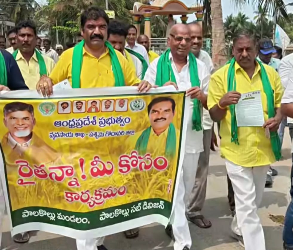 పాలకొల్లు: మార్చి, 18(తెలుగు న్యూస్ పవర్.కాం) రైతే రాజుగా చేయాలని, కూటమి ప్రభుత్వం సంకల్పించిందని స్థానిక వ్యవసాయ మార్కెట్ కమిటీ చైర్మన్ కోడి విజయభాస్కర్ పేర్కొన్నారు. ప్రభుత్వం ప్రవేశ పెట్టిన రైతన్న మీకోసం పథకం ప్రచారంలో భాగంగా, బుధవారం తిల్లపూడి,మట్టపర్రు గ్రామాల్లో తెలుగుదేశం నాయకులు, అధికారులు, రైతులతో కలిసి పర్యటించారు. ఈ సందర్భంగా ఆయన రైతులతో మాట్లాడుతూ, దళారీ వ్యవస్థ నిర్మూలనే లక్ష్యంగా,రైతులకు మేలు చేసే విధంగా కూటమి ప్రభుత్వ ఈ పథకం ఉద్దేశించిందన్నారు. అర్హులైన రైతులందరికీ సంక్షేమ పథకాల అమలు, రైతన్న మీకోసం లో సమర్థవంతంగా అమలు చేస్తారన్నారు. ఈ కార్యక్రమంలో నీటి సంఘం అధ్యక్షులు రాంబధ్రరాజు, వ్యవసాయ అధికారి, పి మురళీకృష్ణ, కూటమి నాయకులు, రైతులు పాల్గొన్నారు.