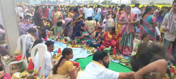 పాలకొల్లు:డిసెంబర్,21(తెలుగు న్యూస్ పవర్) ఉభయ గోదావరి జిల్లాల గోవింద మాల కళ్యాణోత్సవ కమిటీ ఆధ్వర్యంలో ఆదివారం సామూహిక సత్యనారాయణ వ్రతం అత్యంత వైభవంగా జరిగింది. వెయ్యి యాగాల పుణ్యఫలం తో సమానమైన సత్యదేవుని వ్రతం వందల మంది దంపతులతో కిక్కిరిసిపోయింది. నిర్వాహకుల అంచనాలకు అందని సంఖ్యలో భక్తులు ఈ పూజా కార్యక్రమంలో పాల్గొన్నారు. వారికి కావలసిన పూజా సామాగ్రి మొత్తం ఉచితంగా నిర్వాహకులు అందజేశారు. అన్నవరం సత్యనారాయణమూర్తి దేవస్థానం నుంచి వచ్చిన 11మంది పండితులు, సత్యనారాయణ వ్రతం, కథలు వాటి ఫలితాలు చెప్పి, భక్తులను భక్తిశ్రద్ధలతో పూజలు ఆచరింపజేశారు. ఈ కార్యక్రమాన్ని ఆధ్యంతం మాంటిసోరి పాఠశాల అధినేత కలిదిండి కృష్ణ వర్మ నడిపించారు. కమిటీ గురు స్వామి యాదంరెడ్డి సత్యం మాట్లాడుతూ, వచ్చే ఏడాది వేల సంఖ్యలో భక్తులు పాల్గొని, వారిని చిన్న తిరుపతి బస్సుల్లో ఉచిత యాత్ర జరిపించాలని తలపెట్టినట్టు వెల్లడించారు. ఈ ఆధ్యాత్మిక కార్యక్రమంలో వేదిక స్థలదాత, ఆర్ఆర్ రైస్ మిల్ అధినేత, అచ్యుతరామరాజు, తటవర్తి కృష్ణమూర్తి ,మేడికొండ శ్రీనివాస్ చౌదరి, పెనుమాక రామ్మోహన్ రావు, బీరక ప్రసాద్, కటారి నాగేంద్ర కుమార్, డి టి డిసి బాబు, గాదంశెట్టి సతీష్, చెరుకూరి మురళి, కుంపట్ల నాగ శ్రీనివాస్, గంధం ఆదినారాయణ, తదితరులు సహాయ సహకారాలు అందించారు. లీల భావనారాయణ, కొత్తపల్లి వెంకటరమణ, షామియానా, మండల రజిని రథాలంకరణ, శీలం ఏసుబాబు టిప్ టాప్ సప్లై చేశారు. సత్యనారాయణ వ్రతం చేసిన దంపతులకు అన్నవరం ప్రసాదం అందజేశారు. పూజలో పాల్గొన్న భక్తులకు బాదంపాలు పంచారు. అనంతరం జరిగిన మహాప్రసాద అన్నదాన వితరణ కార్యక్రమంలో వేలమంది ప్రసాదం స్వీకరించారు. భక్తులు వ్రతమాచరించడానికి అర్చక స్వాములు చెప్పేది చివరి వరకూ అందరికీ వినబడలేదనీ, తగినంత స్థలము లేకపోవడం, పైన టెంట్ లేక ఎండలో కూర్చోవడం వల్ల కొంత ఇబ్బంది కలిగిందని భక్తులు అభిప్రాయపడ్డారు. గత ఏడాది కంటే భక్తులు అధిక సంఖ్యలో పాల్గొనడం వల్ల ఈ చిన్నపాటి సమస్య ఎదురయిందని కమిటీ వారు తెలిపారు.