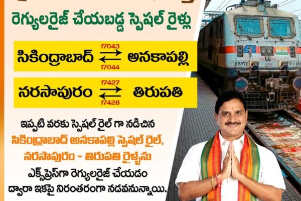 వచ్చేవారం పట్టాలెక్కనున్న ప్రత్యేక రైళ్ళు – రంగంలోకి దిగిన కేంద్ర మంత్రి, భూపతిరాజు శ్రీనివాస వర్మ.