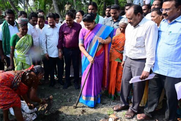 పోడూరు; ఏప్రిల్, 18(తెలుగు న్యూస్ పవర్. కామ్) స్థానిక పెనుమదం గ్రామంలో మహాత్మా గాంధీ జాతీయ ఉపాధి హామీ పథకం “జలధార – జలహారతి” కార్యక్రమానికి కలెక్టర్ చదలవాడ నాగరాణి శనివారం శ్రీకారం చుట్టారు. అప్పి చెరువు పూడికతీత పనులను జిల్లా కలెక్టర్ చదలవాడ నాగరాణి గుణపంతో తవ్వి పనులు ప్రారంభించారు. కూడికచేత వల్ల నీటి నిల్వ సామర్థ్యం పెరిగి, భూగర్భ జలాల నీటి మట్టం పెరుగుతుందన్నారు. గ్రామీణ ఉపాధి కల్పన కార్యక్రమం పాల్గొన్న కార్మికులకు స్వయంగా…