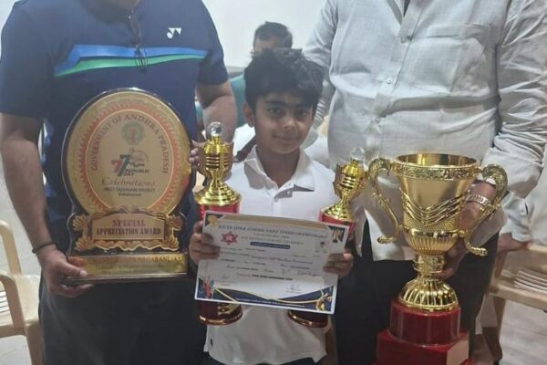 పాలకొల్లు: ఫిబ్రవరి, 4(తెలుగు న్యూస్ పవర్) బాల టెన్నిస్ యోధుడు దార్షిక్ ను, స్థానిక కాష్మో కల్చరల్ స్పోర్ట్స్ క్లబ్ అధ్యక్షులు గొట్టుముక్కల గాంధీ భగవాన్ రాజు బుధవారం సాయంత్రం జరిగిన కార్యక్రమంలో, సభ్యులతో కలిసి అభినందనలు తెలియజేశారు. దార్షిక్ 2025 టెన్నిస్ బెస్ట్ ప్లేయర్ కప్ సాధించారు. సౌత్ ఇండియన్, టెన్నిస్ టోర్నమెంట్లో ఈ బాలుడు రన్నర్ గా వచ్చాడు. ఈ పోటీలు విజయవాడలో ఆదివారం జరిగాయి. బాలుర 9 ఏళ్లలోపు విభాగంలో ఈ అవార్డు…