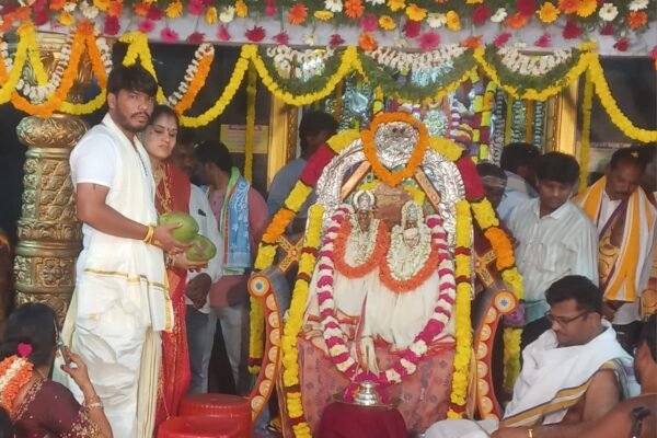 యలమంచిలి: మార్చ్,1(తెలుగు న్యూస్ పవర్) స్థానిక ఇలవేల్పు, శ్రీశ్రీశ్రీ మూవస్థానేశ్వరి అమ్మవారి జాతర ఉత్సవాల్లో భాగంగా ఆదివారం అఖండ అన్నసమారాధన జరిగింది. వేలాది మంది భక్తులు మహా ప్రసాదం స్వీకరించడానికి, పరిసర గ్రామాల నుంచి కుటుంబ సమేతంగా తరలివచ్చారు. నిర్వాహకులు 15 వేల మంది వరకు వస్తారని అంచనా వేసారు. మాంసాహార, శాఖాహార మహా ప్రసాదం వడ్డించారు. దాదాపు వెయ్యి కేజీల మటన్, 800 కేజీల చికెన్ తో వంటకాలు సిద్ధం చేశారు. భారీగా జరిగిన ఈ…