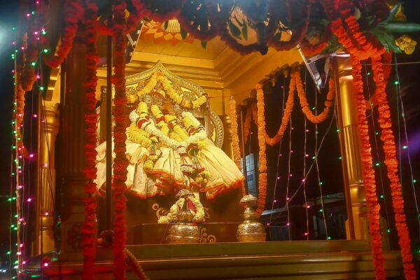 పాలకొల్లు:ఫిబ్రవరి,28(తెలుగు న్యూస్ పవర్) స్థానిక ఎడ్ల బజార్ సెంటర్లో వేంచేసి ఉన్న శ్రీ కనుకదుర్గా మల్లేశ్వర స్వామి వార్ల కళ్యాణోత్సవాల్లో భాగంగా శనివారం రథోత్సవం జరిగింది. ఈ కార్యక్రమంలో గుండు నాగబాబు వారి కుటుంబ సభ్యులు పాల్గొన్నారు. పురవీధులలో ఏనుగు అంబారిపై అమ్మవారు ఊరేగారు. పూలచత్రాలు ఇరువైపులా బారులు తీరగా, గరగ నృత్యాలు, బేతాళ నృత్యాలు, మ్యూజికల్ బ్యాండ్ బృందాలను అనుసరించి రథోత్సవం సాగింది. భక్తులు శ్రీ కనకదుర్గ మల్లేశ్వర స్వామి వార్ల అనుగ్రహ దర్శనం అందుకున్నారు….