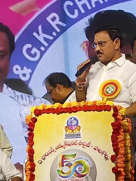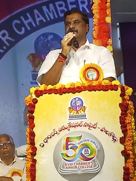 Honorable minister for water resources Sri Nimmal రామానాయుడు spoke at Chambers College golden jubilee celebrations at Palakollu.
